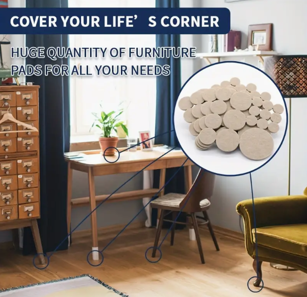 Preserve the beauty of your floors with our Furniture Felt Pads – expertly crafted to protect against scratches on wood, tile, laminate, ceramic, and all hard surfaces.